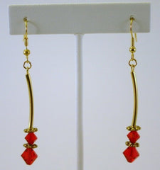 Type: Earring - Long and LeanThese wimsical earrings will surely make your ears happy. They have red Swarovski Crystals with gold accent beads and have brass french earwires.