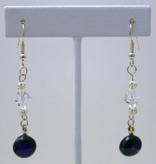 Type: Earring - Long and LeanThese long dangly have lots of sparkle! They have deep blue dichroic cabachons at the bottom accented with Swarvoski and accent beads in between. These should go well with many of my blue dichroic pendants.