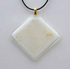 Looking for that subtle piece? This is it! The pendant is simple and classic with beautiful gold mica. It is 2 7/8 ×2 1/2 inches long. It comes with an 18 inch black leather cord with a lobster clasp. |