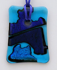 Type: PendantThis funky pendant will go well with any blue outfit. It is definately a statement piece. It is 1 1/2×2 1/4 inches long. It comes with an 20 inch blue satin cord with a toggle clasp.