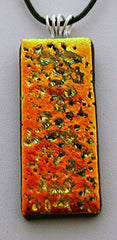 Type: PendantLooking for something with lots of shimmer and dimension to go with your reds and oranges? This is it! The pendant has a fine silver bail fired into the piece and is 7/8×2 inches long. It comes with an 18 inch black leather cord with a lobster clasp.