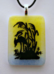Type: PendantWant to go south for the winter? It is handpainted and fired numerous times to get this beautiful end result. It comes with an 18 inch black leather cord and is 1 1/4×1 3/4 inches long.