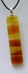 Type: PendantThis long very retangular pendant has lots of layering of colors to go well with many outfits. It comes with a 18” black leather cord. It is 5/8×2 3/8 inches long.