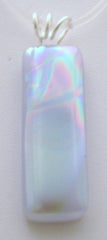 Type: PendantThis fun dichroic pendant will go well with any pastel. It has a fine silver bail fired into the piece and is 5/8×1 7/8 inches long. It comes with an 18 inch black leather cord.
