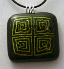 Type: PendantDon’t get lost in this labyrinth pendant! A fine silver bail has been fired into the piece. It comes with an 18 inch black leather cord and is approximately 1 3/8 of an inch square.