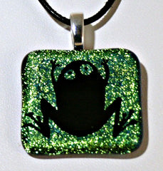Type: PendantFrog lover? Then this would be a good option. It is a beautiful shimmering green and is hand painted. It is 1 1 /8 inches square and comes with an 18 inch black leather cord.