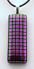 Type: PendantLooking for shine and shimmer? This pendant has a beautiful purple and pink box design and is 3/4×1 3/4 inches long. It comes with an 18 inch black leather cord with a lobster clasp.