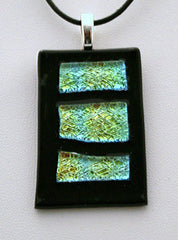 Type: PendantThis cute but striking pendant will go well with black, yellow, green, or gold colored outfit. It is 1 × 1 5/8 inches square. It comes with an 18 inch black leather cord.
