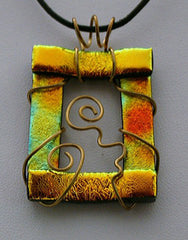 Type: PendantIf you are looking for vibrant piece, here it is. It is 1 1/8 × 1 1/2 inches long and is wire wrapped with brass wire. It comes with an 18 inch black leather cord.